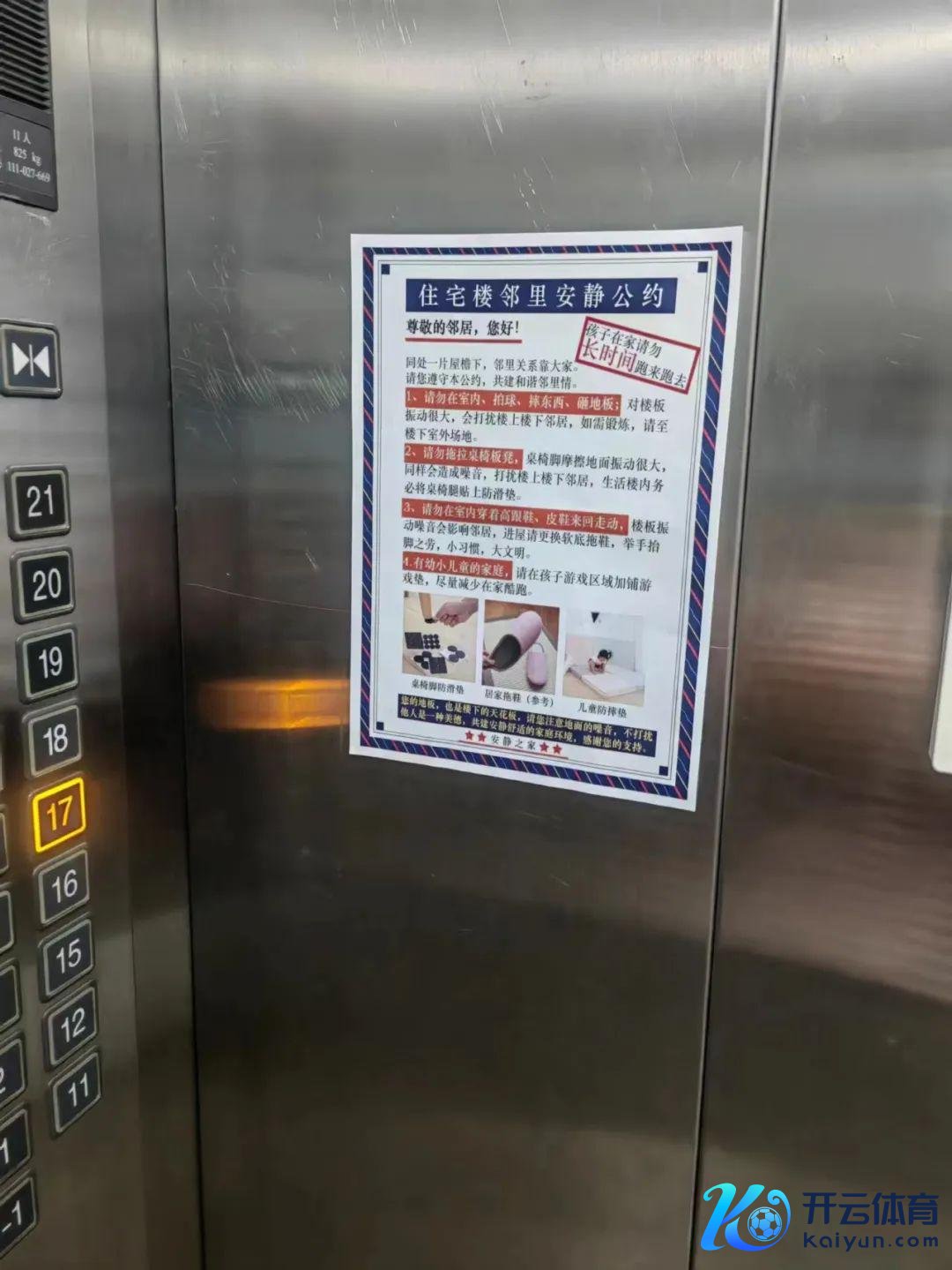 傅岳在小区电梯内张贴《住宅楼邻里闲适契约》 | 受访者供图
