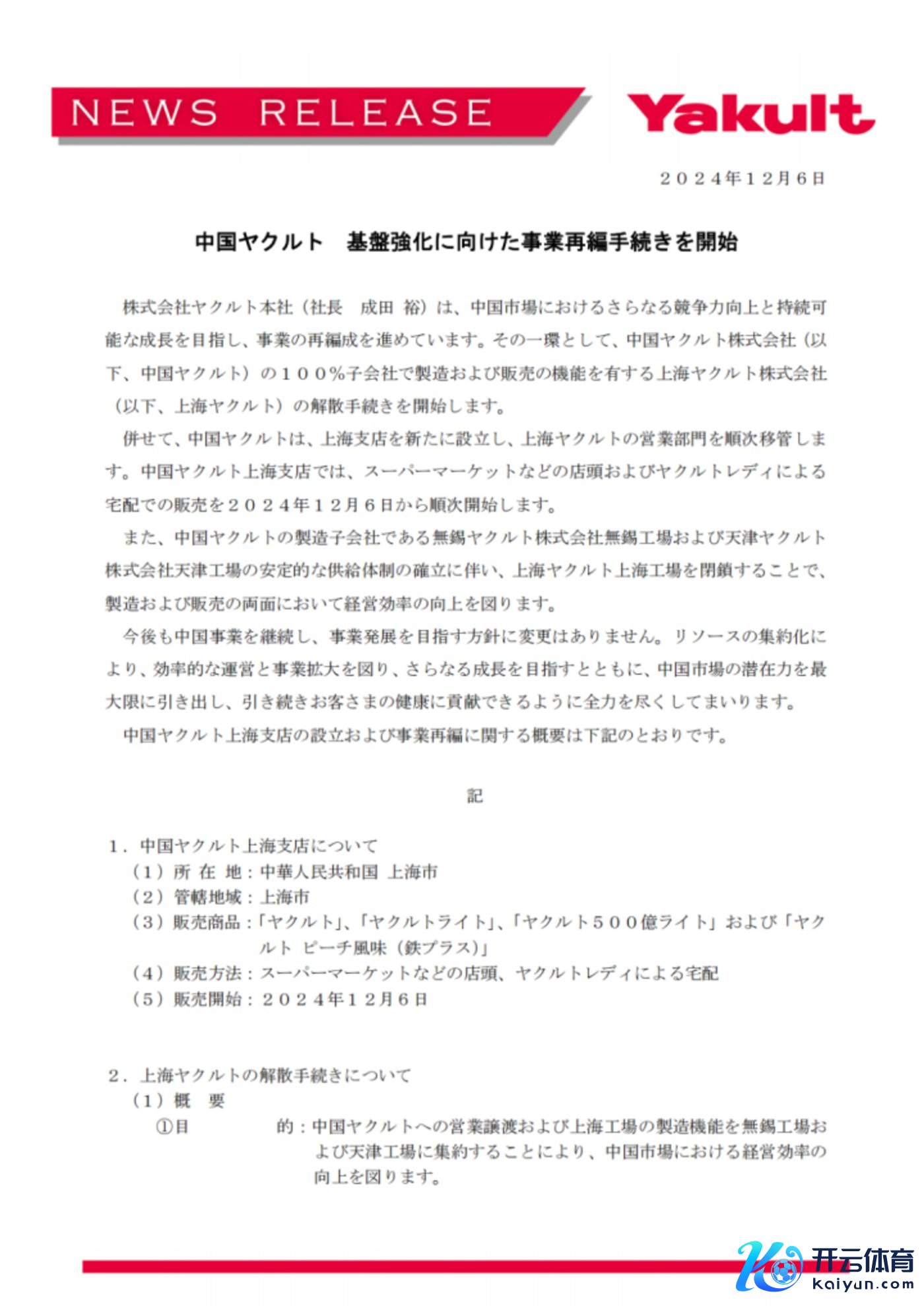 据悉,当地法东谈主“上海益力多乳品有限公司”相应斥逐,该公司营业部门等将由养乐多本社的全资子公司“养乐多(中国)投资有限公司”接办。