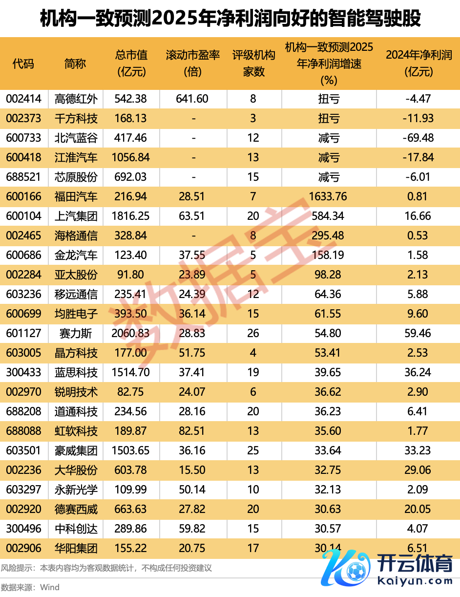 机构一致预测2025年净利润向好的智能驾驶股一览机构一致预测2025年净利润向好的智能驾驶股一览