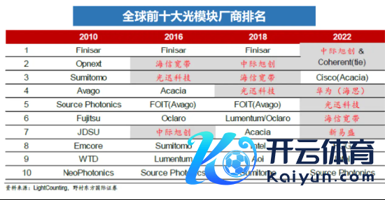 尤其是,我国光模块厂商在全球齐具备极高竞争力,全球前十大厂商中国企业占据五席!