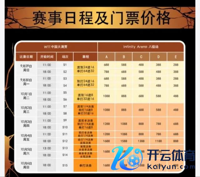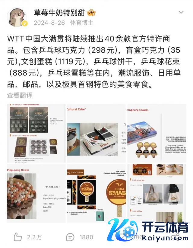 以 2024 年 9 月的 WTT 北京大满贯例如,除了能比好意思演唱会的门票价钱外,官方还推出了 40 余款相近商品,比如 1119 元的文创蛋糕、888 元的乒乓球花束等,此外还特等筹谋了包含文娱区、餐饮区及逐日球员碰头会等在内的公园行为,公园门票为每东谈主每天 68-88 元。