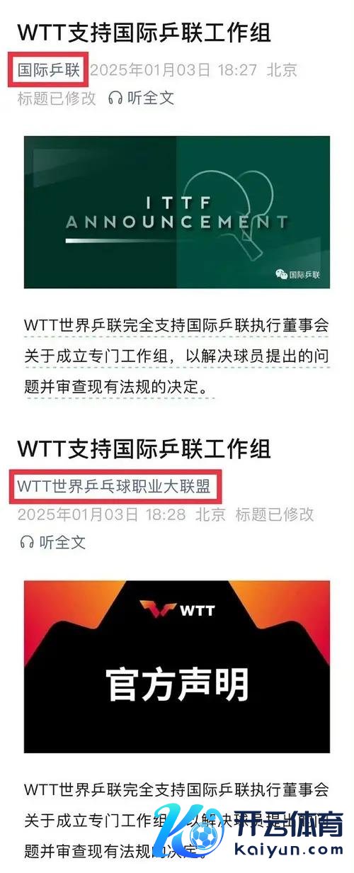 近日,退出天下名次风云的发展也缓缓"幽默"起来。1 月 3 日,WTT 天下乒联和 ITTF 海外乒联同期发布建设相关责任组的公告,却被网友质疑疑似小编切错号: