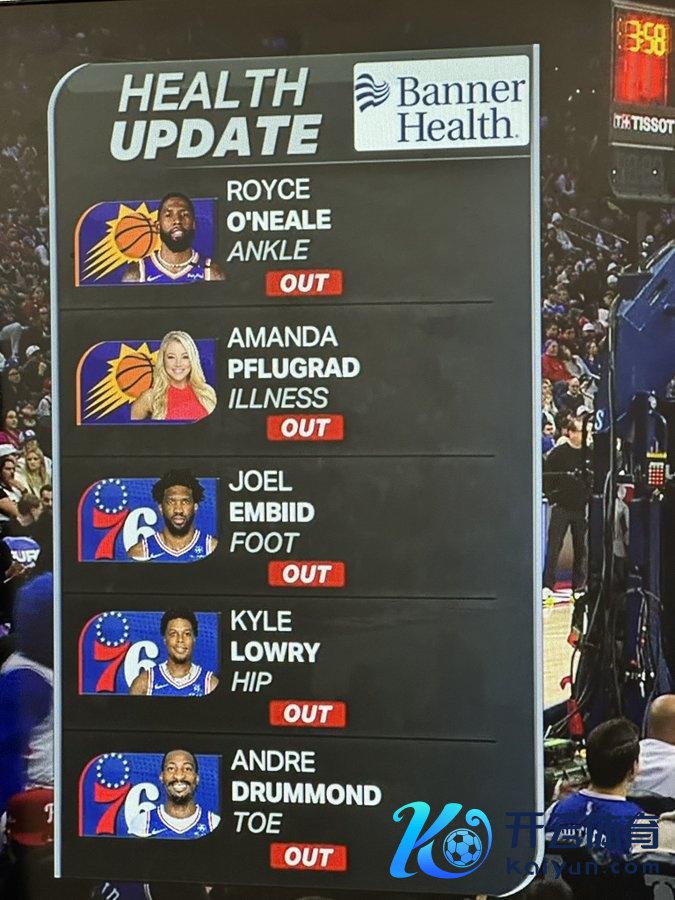 开yun体育网恩比德(脚部)、洛瑞(臀部)、庄神(脚趾)-开云官网kaiyun切尔西赞助商 (中国)官方网站 登录入口