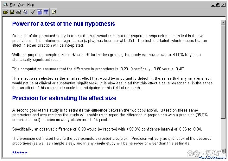 Power and Precision是一款相称实用的统计器具,它不仅能帮你快速遐想样本量,还能通过交互式操作、一键生成论述和图表等功能,让你的有计划遐想愈加科学、更有劝服力。要是你正在为有计划遐想中的统计问题苦恼,不妨试试这款软件,说不定它等于你的“有计划神器”呢!