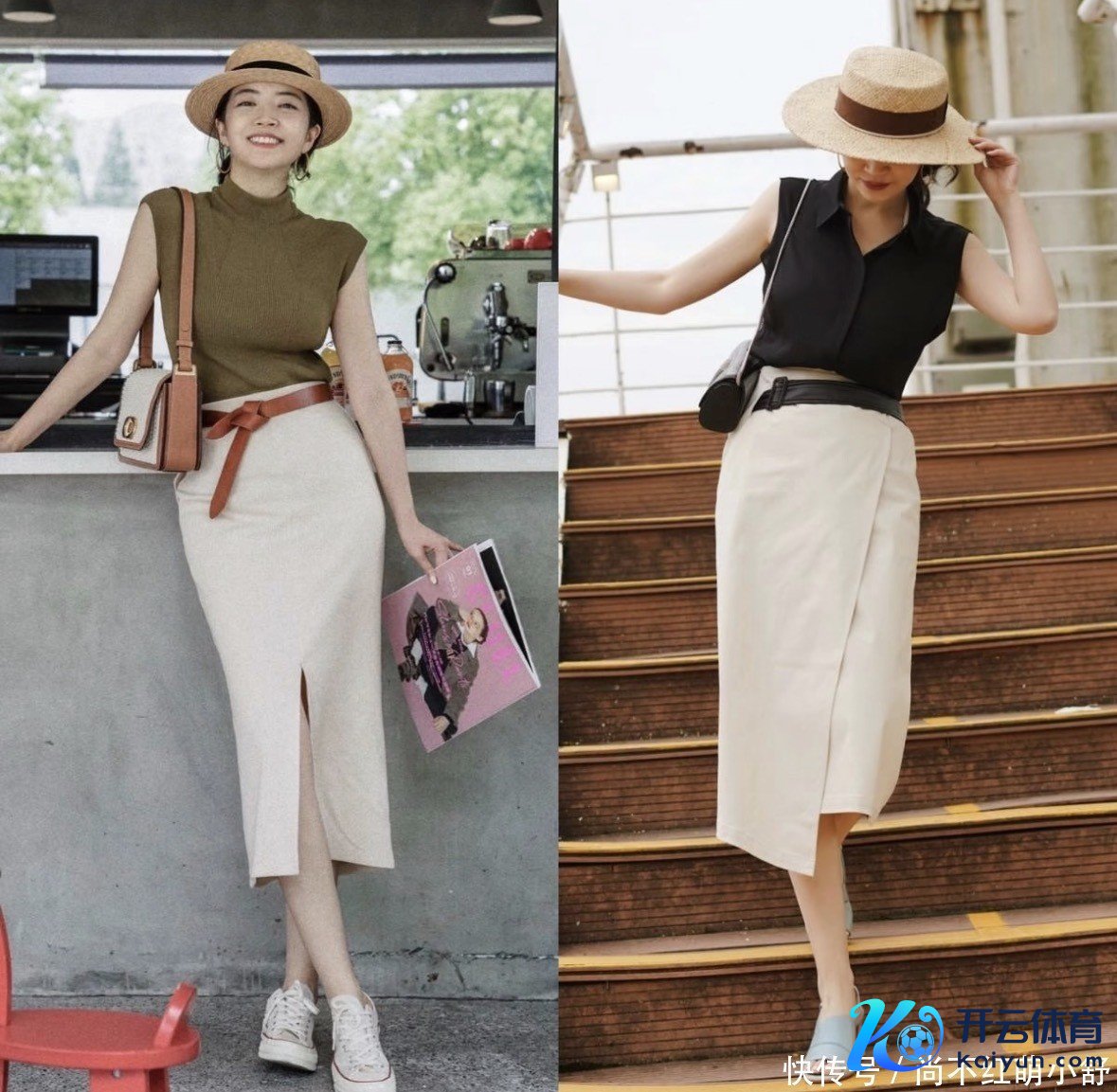 鞋子和裙子一个热沈,视觉上腿被“延长”了。玄色裙子配玄色鞋子,米色裙子配米色鞋子,浮浅凯旋,成果肉眼可见。
