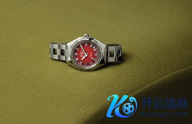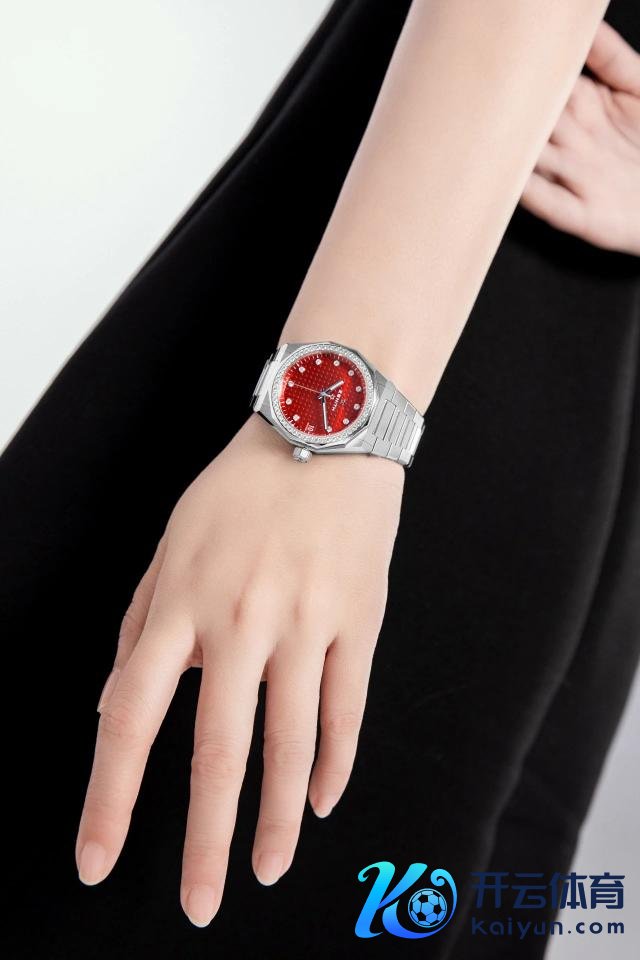 真力时的新春特等款手表亦然一派红红火火。这枚DEFY巅峰系列天空手表霄霞红限量版,36毫米表径小巧景况,表圈镶嵌52颗亮堂式切割钻石,与镶钻时标交相照映,也烘托得红色表盘愈加瞩目了。