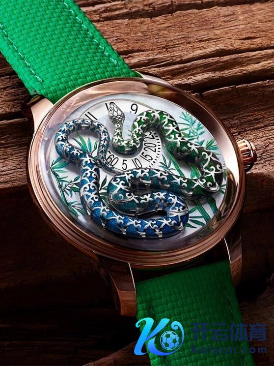贝母表盘的名堂则勾画了竹子图案,嗅觉雅克德罗以致把蛇湿润的鳞片名义王人进展了出来,蛇好像随时王人要从表盘上爬走似的,终点强横。
