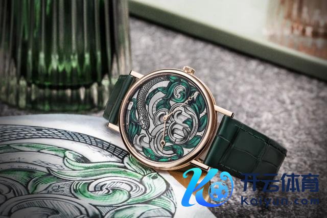 而表盘采纳宝玑历史悠久的玑镂刻花工艺,光是制作它的玫瑰车床就有100多年历史,纹路极其精确良好,嗅觉蛇浮雕和玑镂刻斑纹饰如鱼似水,充满流动的韵律感,像一幅画般耐东说念主寻味。