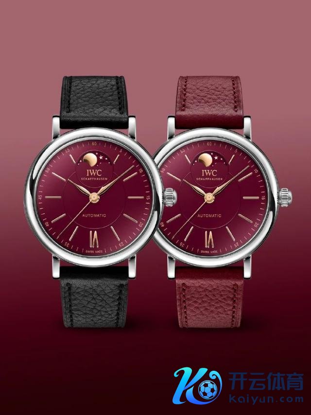 IWC万国表本年的生肖表主打柏涛菲诺系列,勃艮第红盘面很安妥新年,37毫米表径小巧从简,月相自大窗位于12点钟标的,金色月亮和繁星,在勃艮第红色布景的烘托下熠熠生辉,颜值相配高。