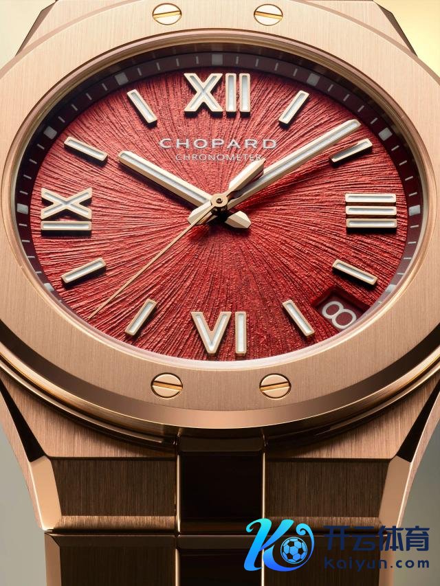 萧邦带来多款Alpine Eagle雪山傲翼系列新品,最把稳标莫过于这枚中国限量版,灵感来自中国的丹霞地貌,表盘颜色无比绮丽,岩石般的纹理也充满当然生命力。红金配色令东说念主过目不忘,直径41毫米十分大气,限量33枚刊行。