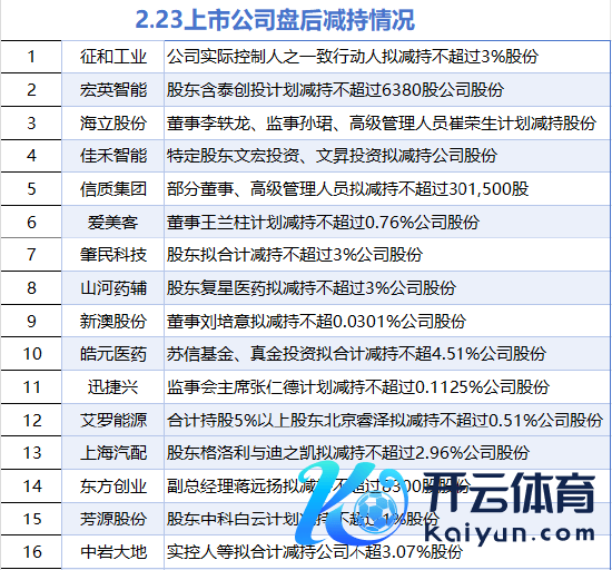 据统计云开体育云开体育,2月23日,暂无A股上市公司泄漏增合手情况。包括征和工业、宏英智能、海立股份、佳禾智能、信质集团、爱好意思客、肇民科技、江山药辅、新澳股份、皓元医药、迅捷兴、艾罗动力、上海汽配、东方创业、芳源股份、中岩地面在内的16家A股上市公司泄漏减合手情况。