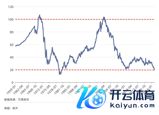 从1959年运行的66年中,K值仅在1979年12月-1981年4月的1年零5个月里小于20,概率为2.15%,是以不错大体以为K=20是黄金价钱上限的一个参考值。但是,在历史上,有1.5%的概率,K值小于17,有1%的概率小于15。K=17和K=15也不错算作黄金价钱高涨的参考。